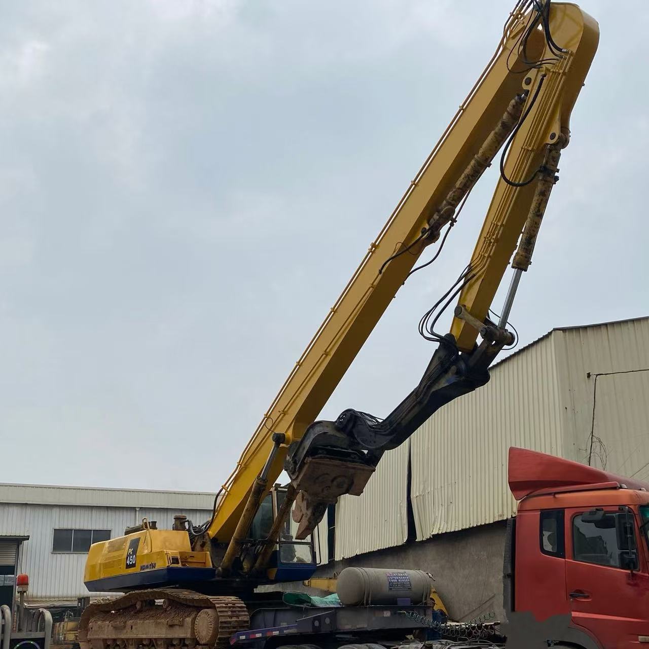 The PC450 Piling Arm Excavator is a heavy-duty solution designed for demanding foundation construction and piling projects.
