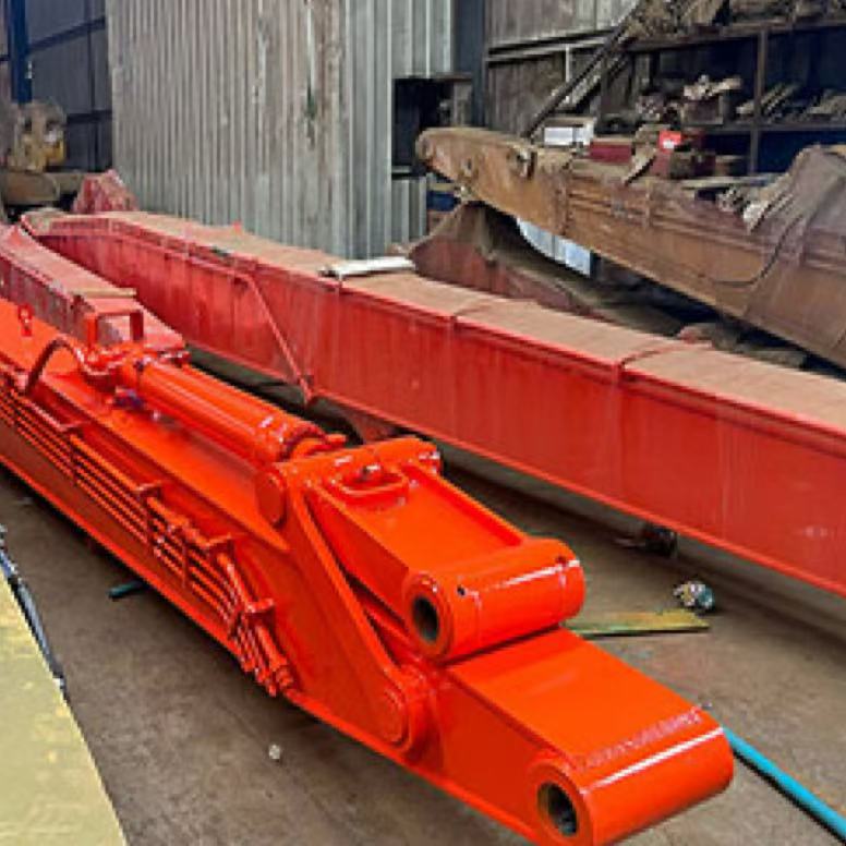 •Before welding, we have use big edge milling machine mill(taper process) the edge of the sheet. So the welding can go to the internal of the steel-sheet and make the structure have higher performance.Orbital welding machines are used for welding, and manual strengthening and welding are performed at corners and reinforcements.Our boom and arm are large-welded box structure and thick or multi-plates for high-stress areas.Also the inside have strength plate make it more stronger.