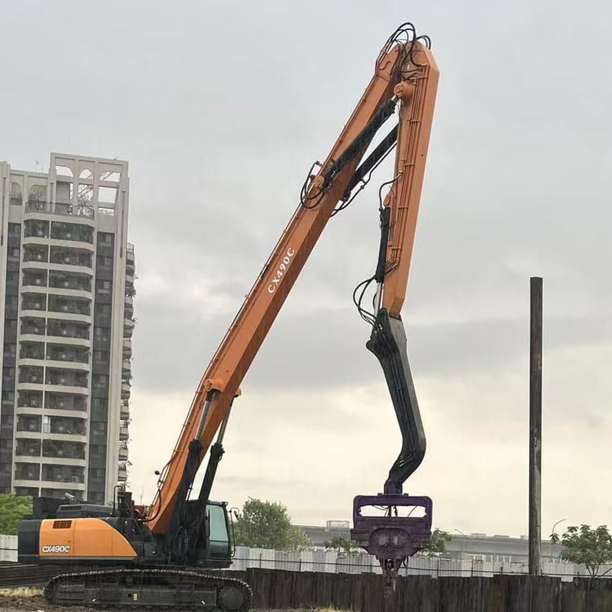 The CX490 Piling Arm Excavator is a heavy-duty solution designed for demanding foundation construction and piling projects.