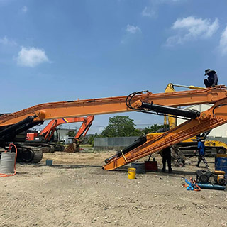 Our boom and arm are large-welded box structure and thick or multi-plates for high-stress areas.