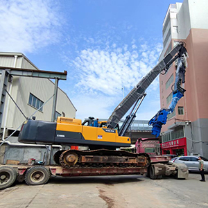 这种打桩臂特别适用于需要 持续垂直力和高振动输出, 例如 板桩施工、光伏桩安装、桥梁基础、河岸加固和地下支护施工.