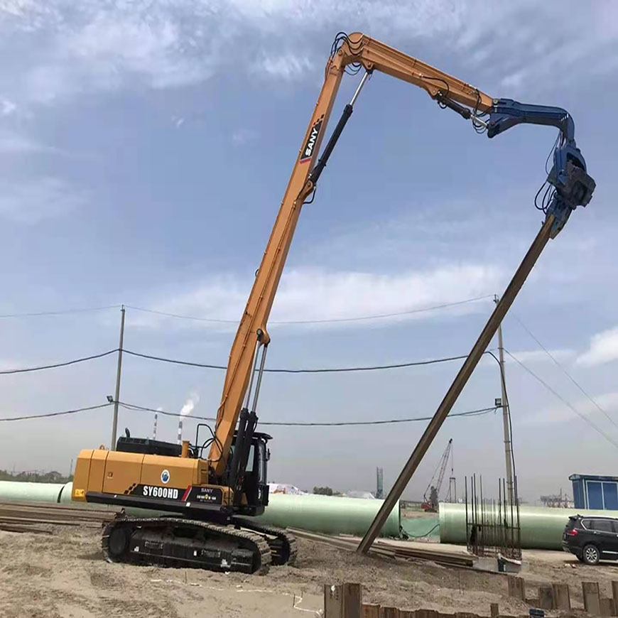 SY600HD 打桩臂是一款重型挖掘机臂,专为基础施工、钢板桩安装、光伏桩施工、桥梁打桩和城市基础加固工程而设计。