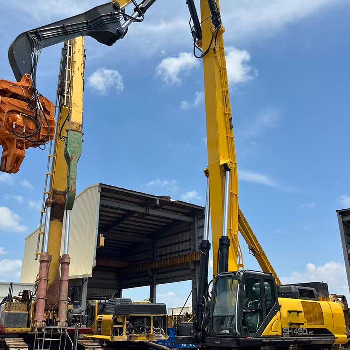 This custom excavator piling arm is widely used in bridge construction, deep foundation works, port projects, and infrastructure development.