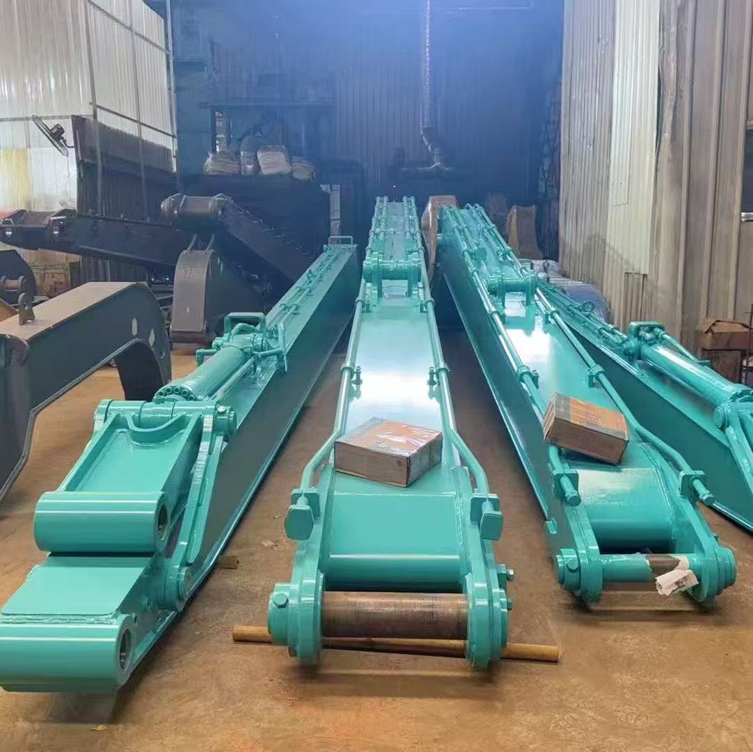 SK500/SK200 Long Reach Excavator with Extension Long Reach Arm for Deep Digging and Open Caisson China Factory manufacture High Quality. SK500/SK200 Long Reach Excavator Boom and Arm is designed for projects that require extended reach and efficient deep excavation while maintaining machine balance and operational safety.Built to match SK500/SK200 platform, this long reach excavator attachment features a strengthened boom structure, optimized working geometry, and reliable hydraulic performance. It allows operators to work at longer distances with improved accuracy and reduced machine repositioning. SK500/SK200 long reach boom is commonly used in river dredging, canal cleaning, slope shaping, deep pit excavation, and waterfront construction projects.Boom length, arm configuration, and bucket capacity can be customized based on working depth, soil condition, and project requirements.This solution offers a practical balance between reach, stability, and productivity for medium-size excavation jobs.